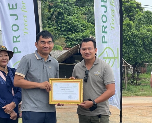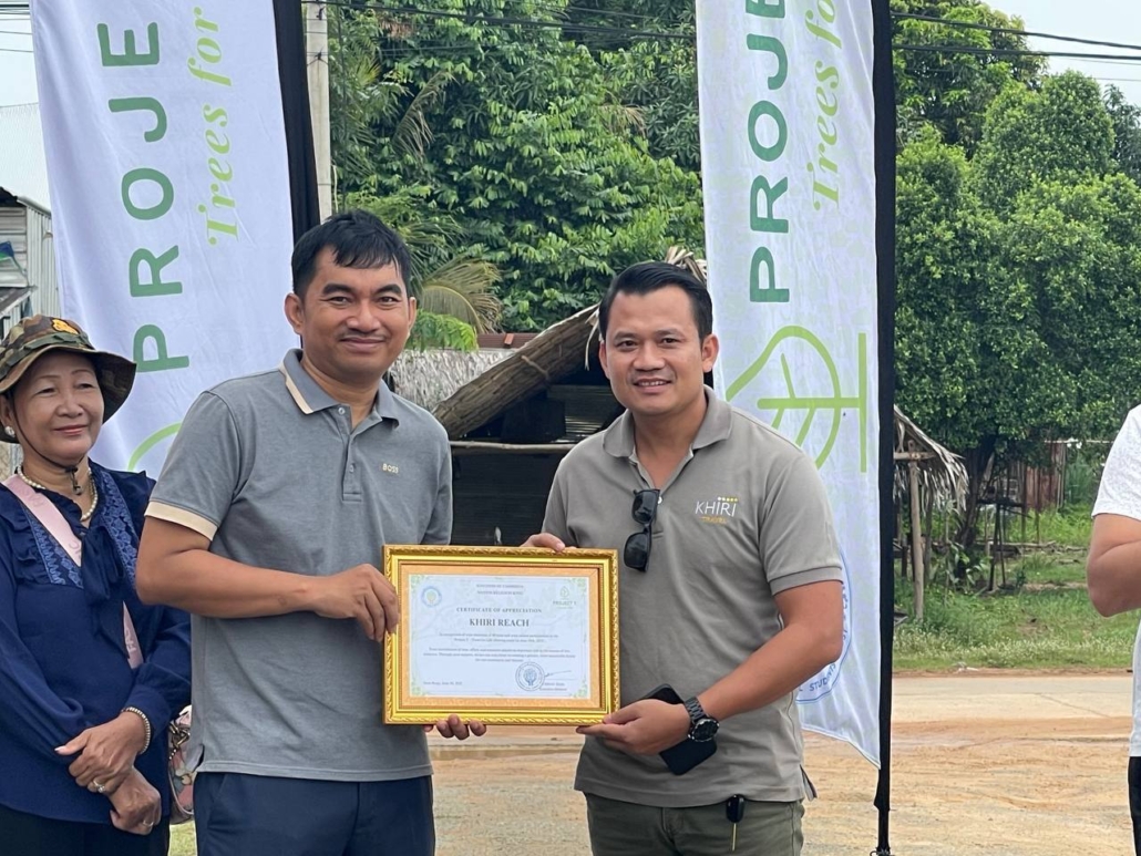 On June 28, 2025, Bunseun You, representing Khiri Reach ambassador, was honored with a certificate of appreciation from the Deputy Governor of Siem Reap. The certificate recognized KHIRI Reach’s donation of 40 trees and was presented during a planting event with the Cambodia Rural Students Trust (CRST). Following to 14 August 2025. The sign has been installed on Angkor Tree Road and Wat Bo Road